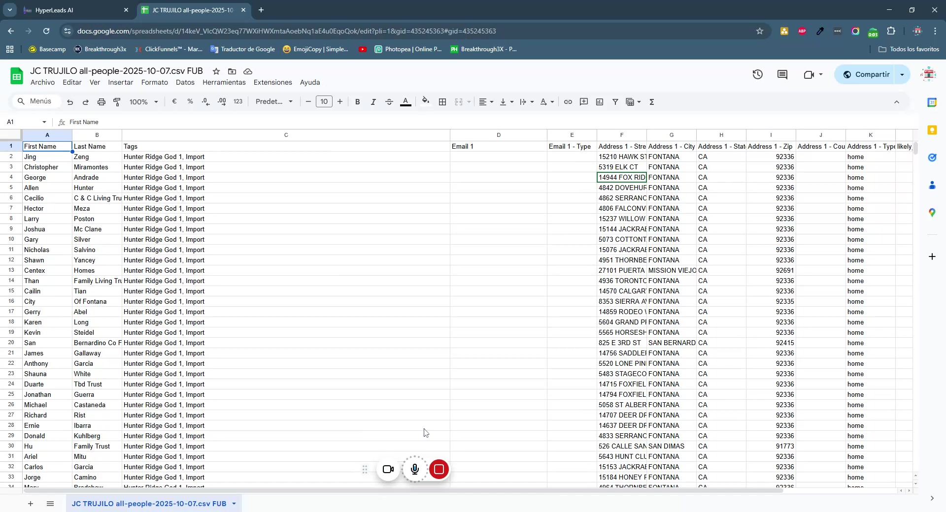 Salvador explica que al importar una hoja de cálculo con 18,656 personas, aproximadamente 1,913 no pudieron ser importadas porque no tienen correo electrónico ni número de teléfono. Sugiere limpiar la base de datos para separar estos contactos y menciona que la información importada incluye etiquetas y campos adicionales como tipo de propiedad y dirección.