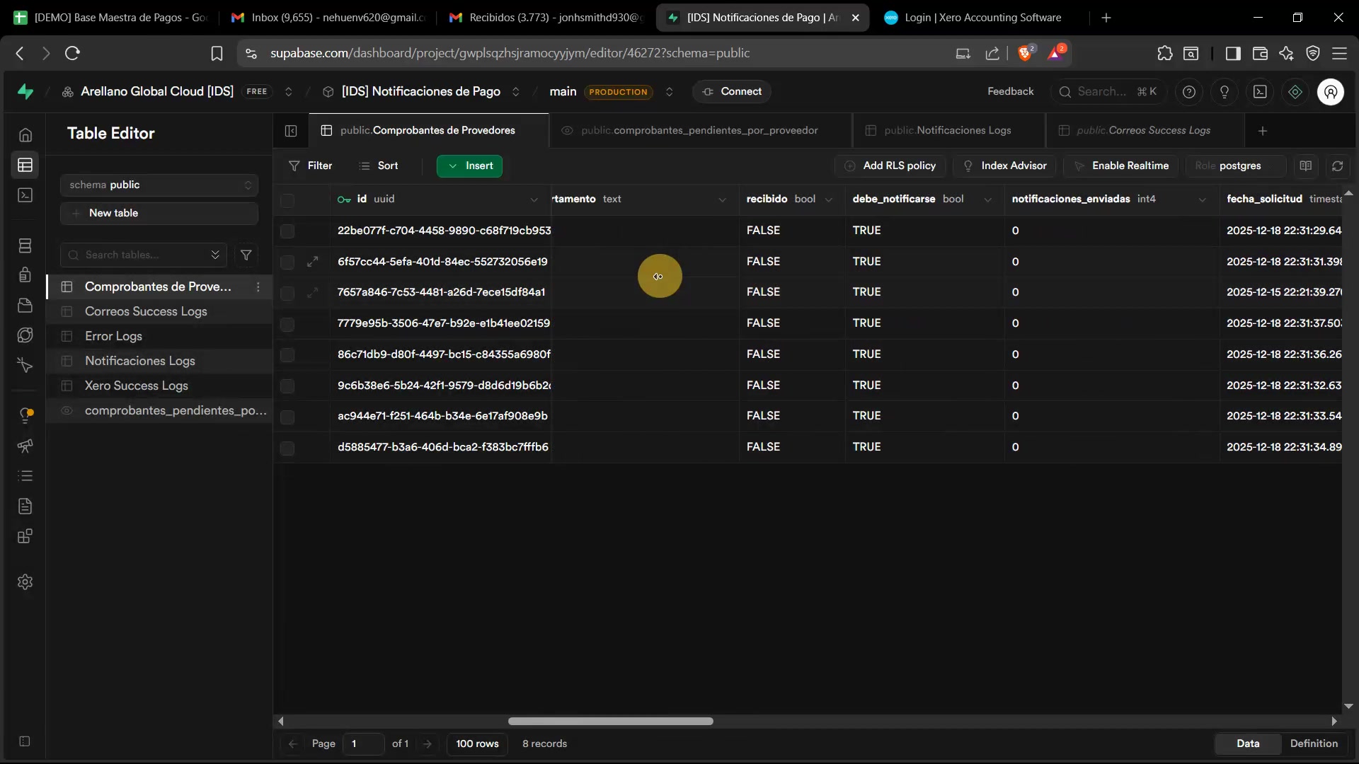 Testeo error comprobante enviado por proveedor incorrecto