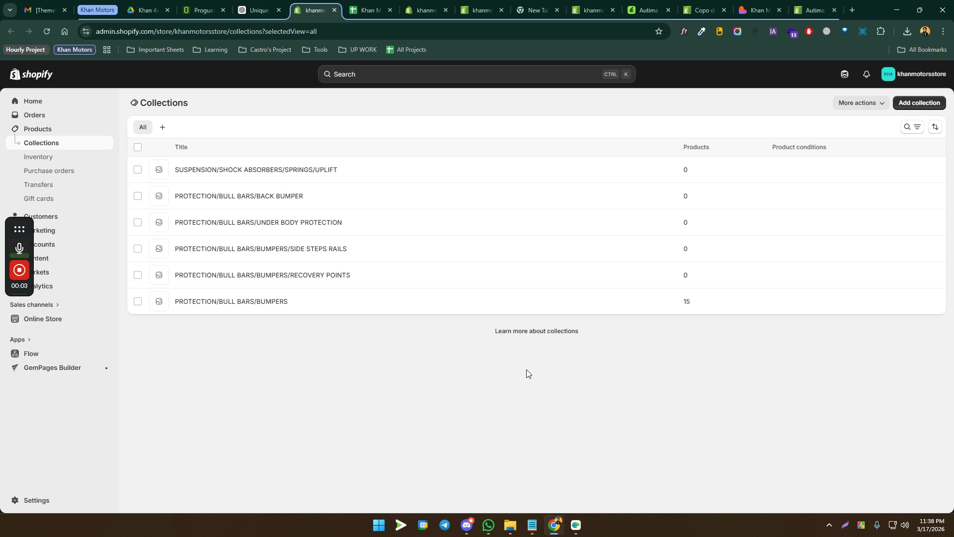 khanmotorsstore · Collections · Shopify - Google Chrome