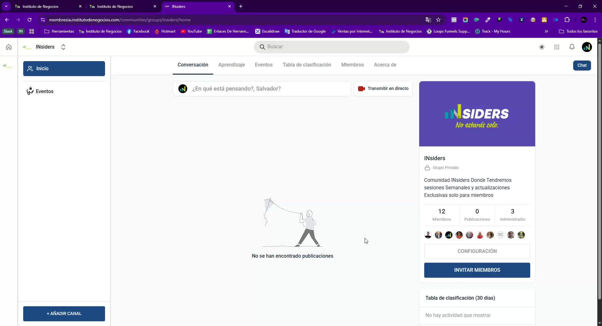 Salvador explica a Gustavo cómo funciona la comunidad que están gestionando, la cual es exclusiva para personas de pago y tiene características similares a un grupo de Facebook con mayor control. Se detalla el rol de moderador, la gestión de posts y comentarios, la administración de usuarios y notificaciones, así como la moderación de contenido denunciado. Finalmente, se muestra cómo gestionar la cuenta y se ofrecen recomendaciones para manejar las notificaciones y la moderación de la comunidad.